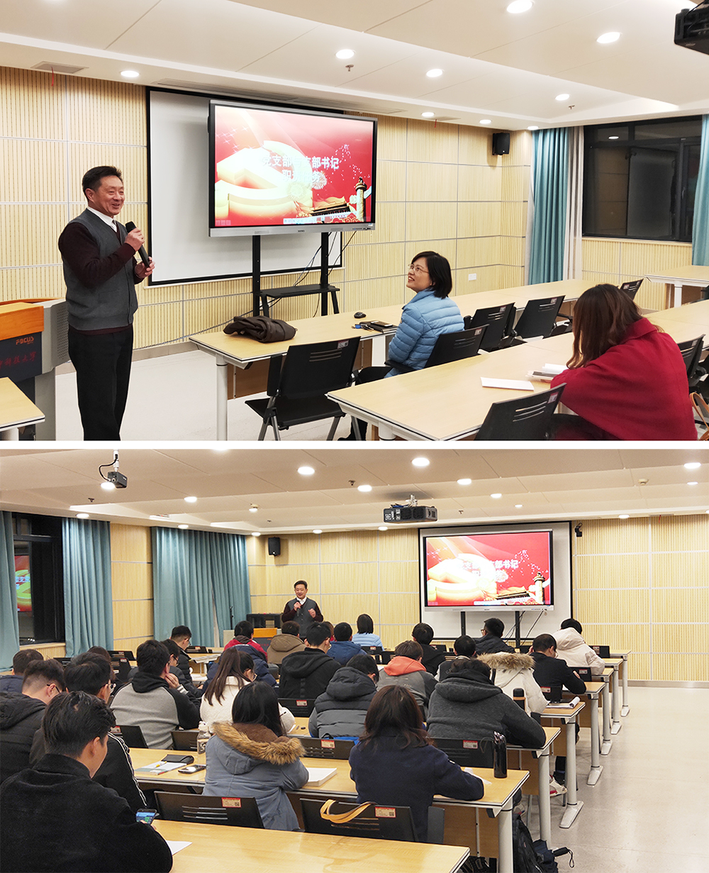 陈业美从国家、学校、学院的发展切入,生动形象地阐述了党组织在发展历程中的作用。“火车跑得快,全靠支委带”,说明了支委的关键作用。他详细讲解了党支部的产生条件与基本任务,以自己几十年的工作经验现身说法,提醒各支委要做“政治上的明白人,科学技术上的追梦人,党建工作的有心人”,要形成“铁三角”关系,可以更好地处理支部内的各项事务。