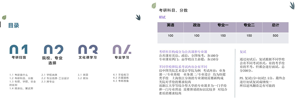 产创1701蔡子系认为考研是实力与运气并存的战场,文化课的学习与专业课的学习穿插有序进行,劳逸结合才能提高学习效率。多看多听多想,在有条件的情况下可以选择报班学习。产品设计专业跨度较广,跨考其他设计专业也可以尝试,从另一种角度来说,有更丰富的专业背景也是一种竞争优势。