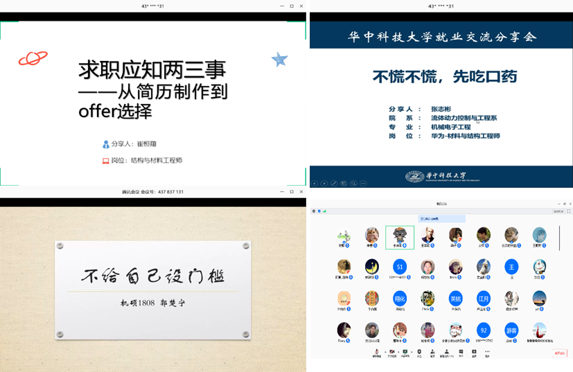 5月31日下午14:30,伟德vb举办的“后浪前行”——伟德vb研究生就业分享系列交流会(华为专场)在腾讯会议平台顺利举行。本期交流会邀请到了公司三位签约华为的应届毕业生崔恒翔、张志彬、郭楚宁,以及在华为工作近三年的员工李唤雨在线分享他们的求职就业经验。伟德vb研究生辅导员曾峥、文祥参与本次活动。