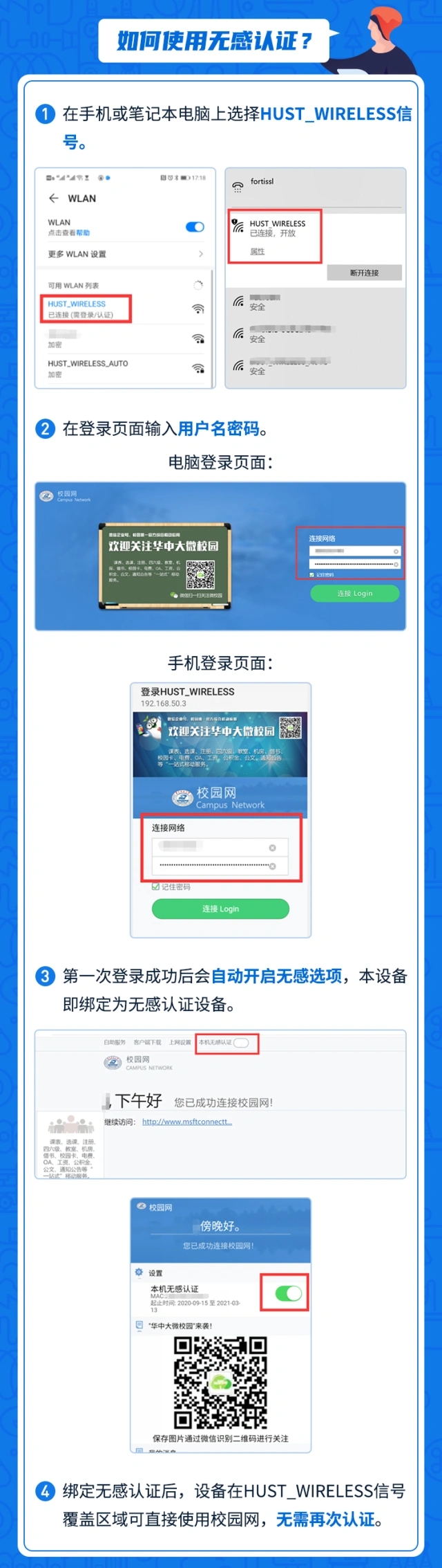 校园无线网启用HUST_WIRELESS无感认证